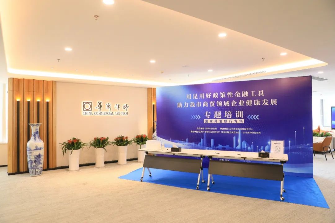 近日,由深圳市商务局、深圳市商务发展促进中心、深圳市服务贸易协会、国家开发银行深圳市分行、华商律师事务所共同举办的“用足用好政策性金融工具助力我市商贸领域企业健康发展”系列培训第二场在华商律师国际中心举行。本场培训由国家开发银行深圳市分行处长车楠,华商涉外委副主任、金融学博士林晖主讲。