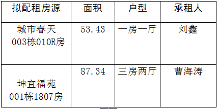 根据深圳市人民政府《福田区2017年度产业人才租赁住房配租方案》,现对拟承租人员予以公示(具体见附表)。