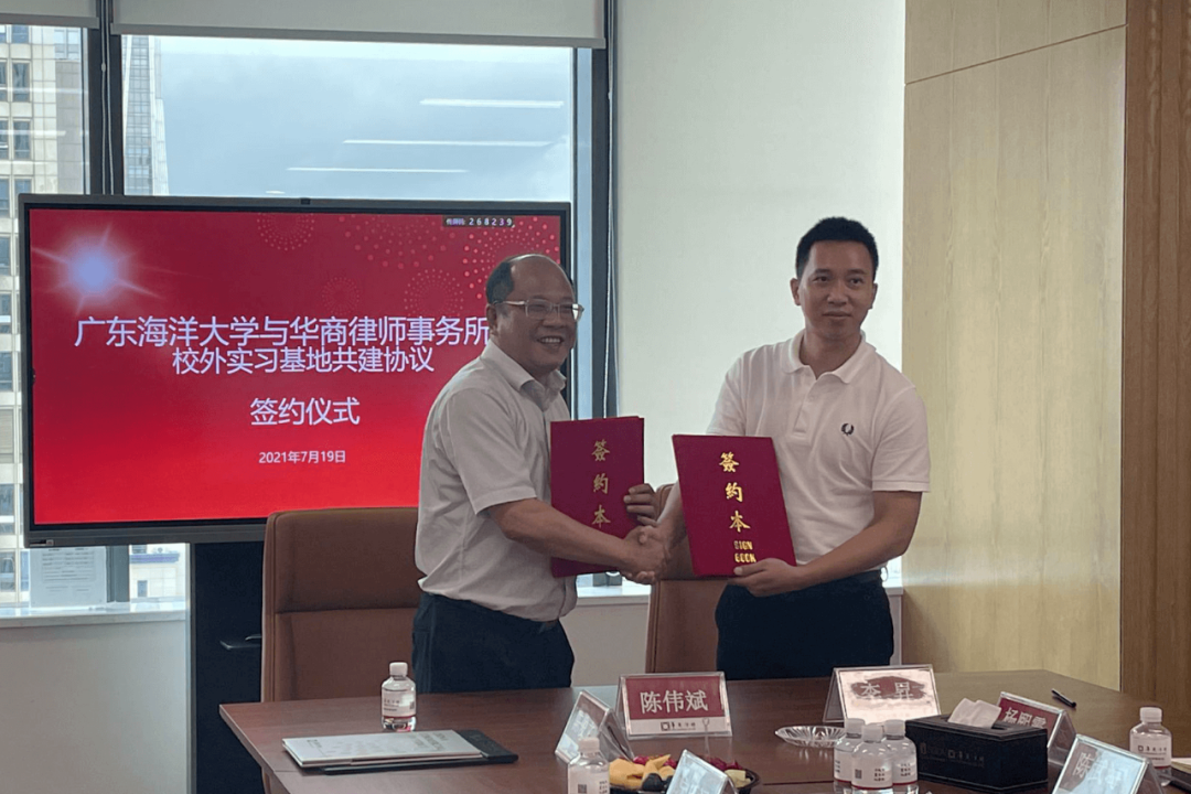 7月19日,广东海洋大学法政学院党委书记陈伟斌、院长张显伟、党委副书记许国炯、党政办公室主任宁乐添、肖晓哲老师一行参访华商,双方签署《校外实习基地共建协议》。