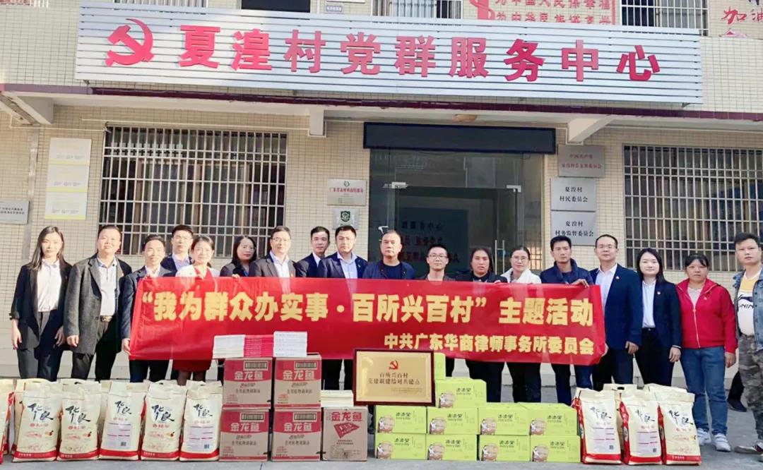 11月13日、14日,中国共产党广东华商律师事务所委员会(以下简称“华商党委”)根据省司法厅党委和省、市律师行业党委关于“我为群众办实事·百所兴百村”活动的工作要求及结对安排,在党委委员梁晓晶同志的统筹下,党委办公室主任李佳锡组织纪委委员吉同燕、第二党支部书记黄少君、第五党支部书记易丽、第十党支部书记黄志雄、龙华分所党支部书记蒋卫东、华商林李黎前海联营所党支部组织委员王敏和优秀党员刘效荣、陈海燕等党委代表前往清远市连州市丰阳镇夏湟村开展“我为群众办实事•百所兴百村”结对共联共建、走访慰问、考察调研等活动。