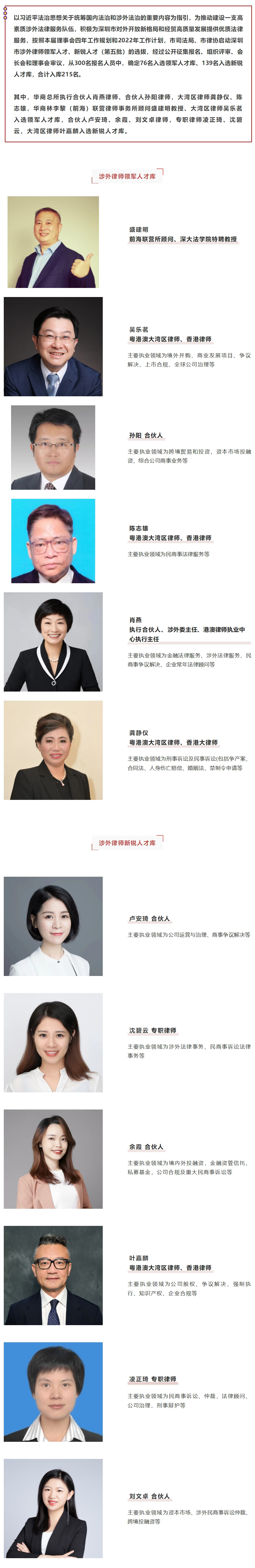 华商多名律师入选深圳市涉外领军人才库、新锐人才库 2023-01-05 列表 上一篇 华商律师入选昆仑信托有限责任公司信托专项法律服务项目律师库 “重新理解客户,创新法律服务”——华商第二届法律服务产品大赛决赛入围名单 下一篇