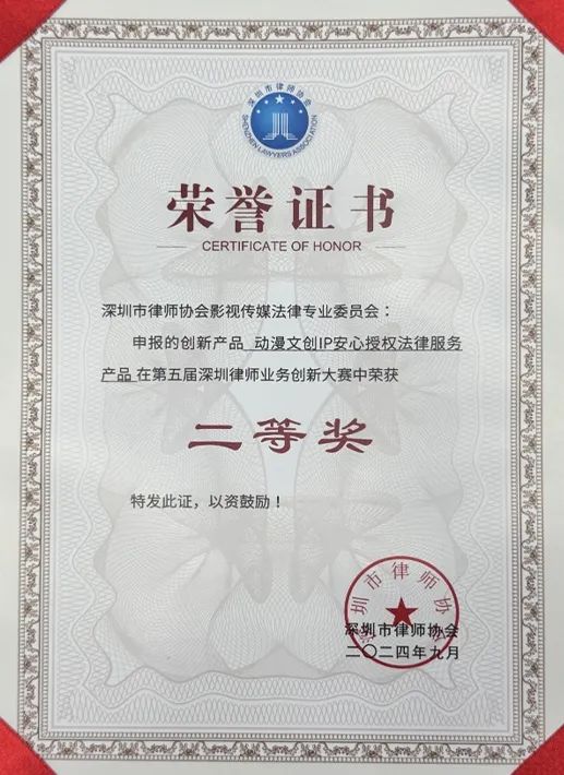 业务创新领航!华商彭英武律师《动漫安心授权产品》斩获深圳律协创新大赛二等奖