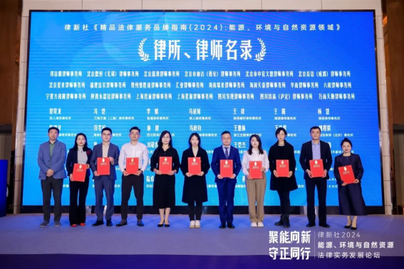 近日,由国内知名媒体律新社主办的“聚能向新·守正同行——律新社2024能源、环境与自然资源法律实务发展论坛”于上海举行。现场发布了《精品法律服务品牌指南(2024):能源、环境与自然资源领域》(以下简称《指南》),并揭晓了“品牌影响力律所”及“品牌之星”荣誉律师等奖项。